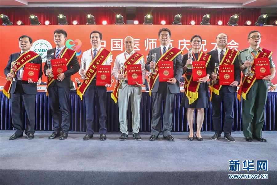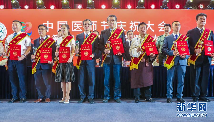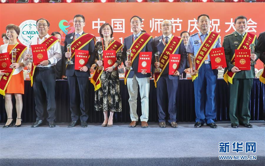 8月19日,第12届“中国医师奖”获奖医师代表在大会上合影。 新华社记者 张玉薇 摄