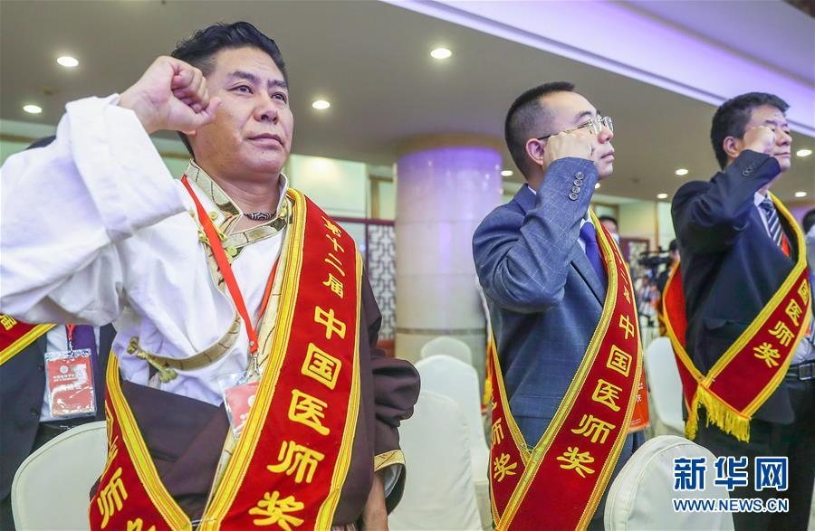 8月19日,获奖医师代表在大会上参加医师宣誓仪式。 新华社记者 张玉薇 摄