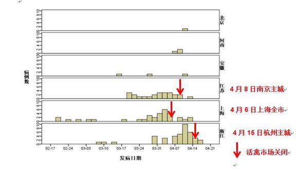 鉴于病例与禽类暴露尤其是活禽市场的关联,发病数最多的三个省份强制关闭了一些城市的大型活禽市场。尽管距离关闭活禽市场尚不足两个潜伏期,但新发病例报告数已出现大幅下降(图3)。