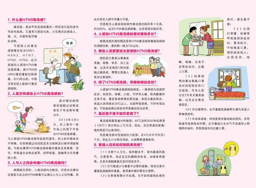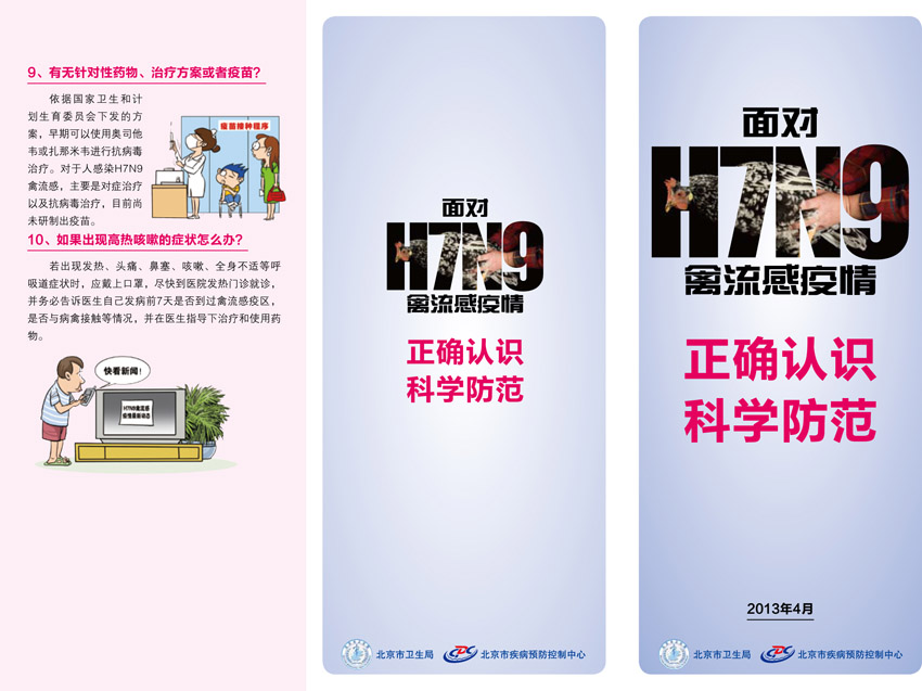 面对H7N9禽流感疫情 正确认识 科学防范 宣传册