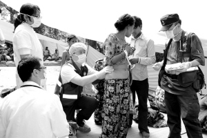 帐篷医院建立后,越来越多的伤员从杜力克市医院被转运过来。虽然有当地志愿者在一旁当翻译,但他们的医疗卫生词汇量有限。“这就需要当地医生协助。”金晓东说。意识到合作的重要性后,双方一拍即合,在帐篷医院以中国医生为主,建立起联合查房制度。