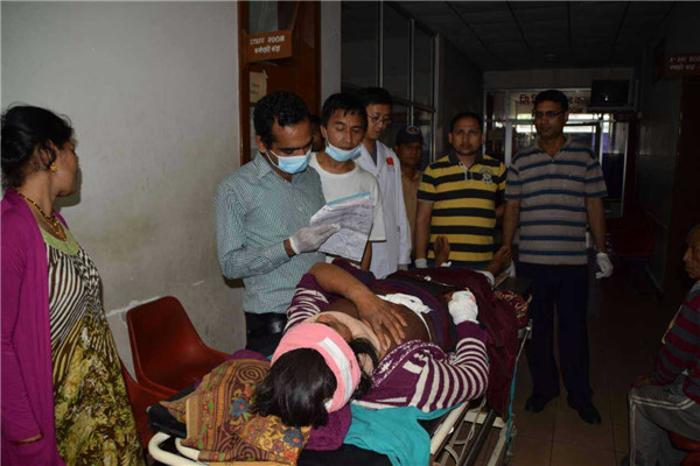 除了在医疗队平时常驻的B.P.柯依拉腊纪念肿瘤医院直接收治伤者,中国医生们还到同城的巴拉特普尔医院和奇达旺医学院等机构参与救治工作,几天来共协助当地医院救治了近500名伤员。