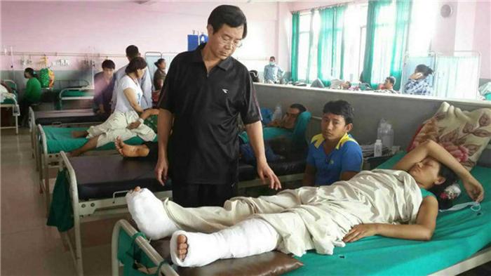 除了在医疗队平时常驻的B.P.柯依拉腊纪念肿瘤医院直接收治伤者,中国医生们还到同城的巴拉特普尔医院和奇达旺医学院等机构参与救治工作,几天来共协助当地医院救治了近500名伤员。