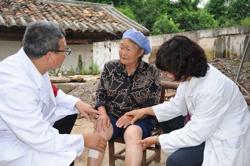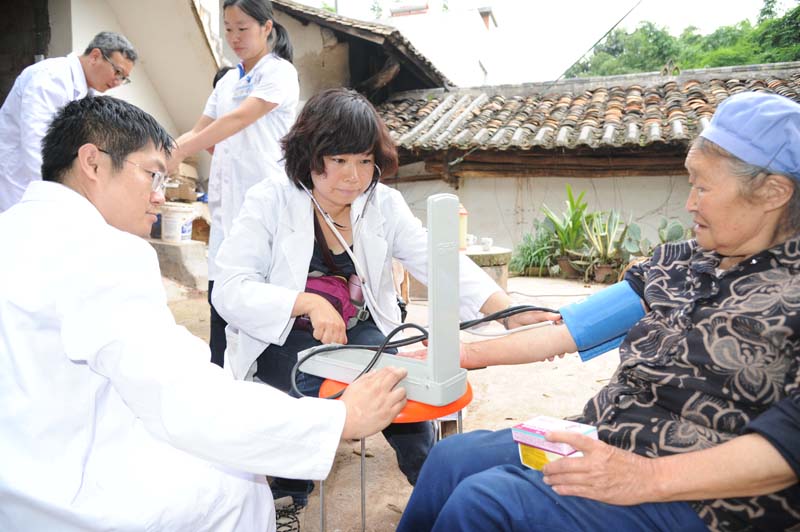 在大坪村三台地小组,昆医附二院肝胆胰内科杨黎宏和消化科李未华两位专家,携带听诊器、血压计和常见药品,走进一户户农家,为村民做健康筛查,询问他们的健康状况。很多村民见到有医生到来,纷纷把自己经常碰到的腰腿痛、头晕、耳鸣、妇科疾病等问题告诉医生,寻求解决的办法。对于一些常见的疾病,两位专家给他们发放了药品,并给他们开出了药方,叮嘱他们要坚持吃药。另外一些需要进一步进行检查才能确诊的疾病,两位专家再三提醒他们,一定要尽快到县医院做一次详细的检查,然后按照医生的要求认真治疗。