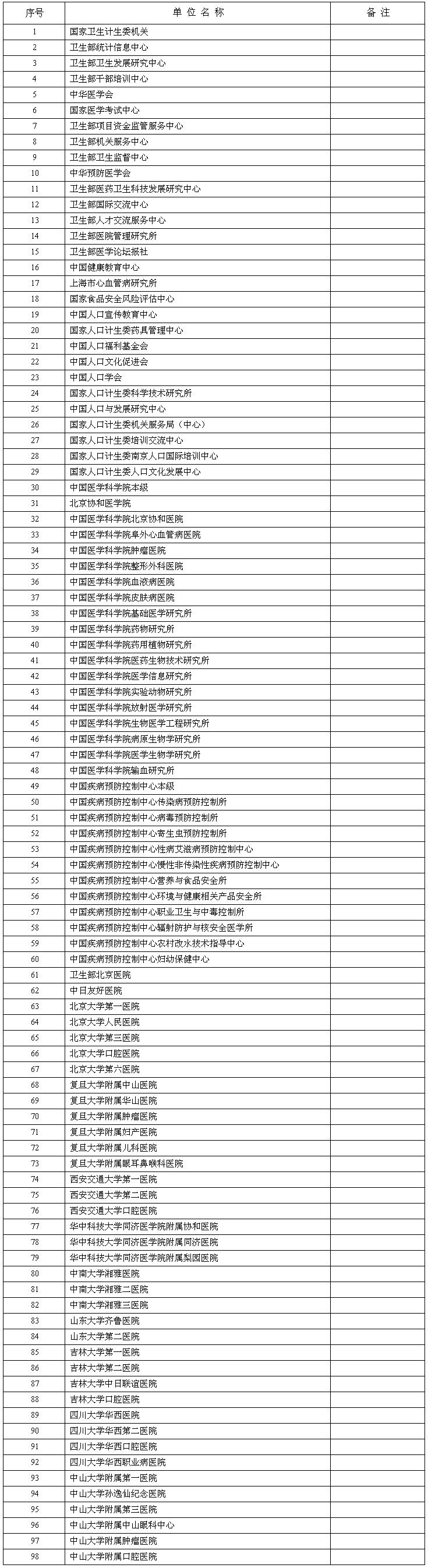 纳入国家卫生计生委2013年部门预算编制范围的单位共98家,详细情况见下表: