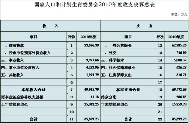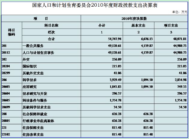 关于国家人口和计划生育委员会2010年度财政拨款支出决算表的说明
